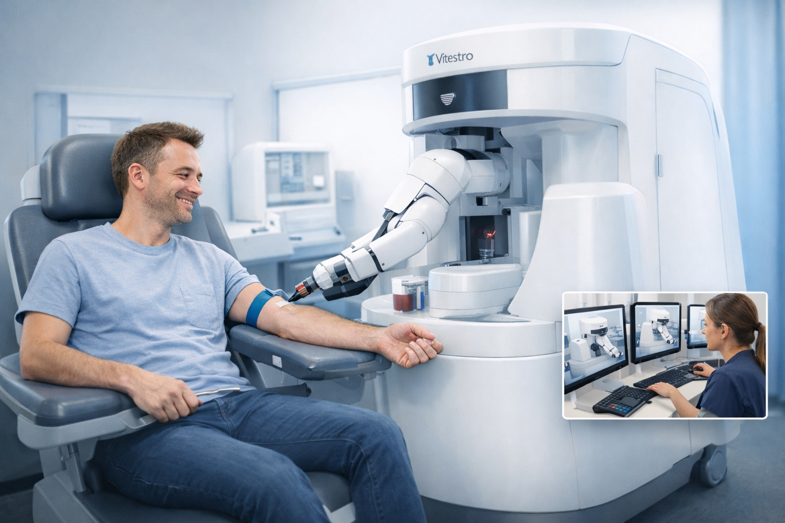 Aletta, созданный компанией Vitestro, — первый в мире полностью автономный робот для забора крови.